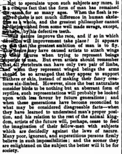 - Which is the most important object:—that of collecting a cabinet of natural curiosities, to become the admiration of children and their nurses, or that of conveying knowledge and truth to the ignorant, to those in whose persons reside that power which will decide the future of this large and important country?—G.H. Rowley, The Sydney Morning Herald, 8 August 1865.[160]