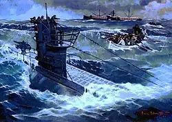 Painting of Merisaar's lifeboat approaching U-99 on 12 July 1940