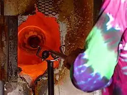 Use of a glory hole to reheat a piece on the end of a blowpipe