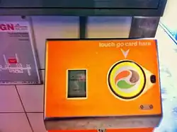 The go card is an electronic smartcard ticketing system currently used on the Translink public transport network (trains, trams, buses, ferries) in South East Queensland, Australia. The go card is used by holding it less than 10 cm away from a card reader to "touch on" before starting a journey, and to "touch off" before finishing a journey. The cost of each journey is deducted from the go card balance.