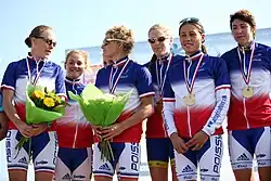 Anja Dittmer, Katrien Verstuyft and Delphine Py-Bilot gold medalists at Tours, 2011.