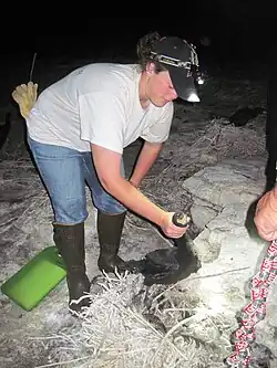 In 2011, 1,000 double-crested cormorant chicks were banded. As an intern, Mandy was the first to take hold of a sleepy chick. Everything was done at night so that the chicks would be sleeping and less aware.