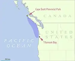 The Graveyard of the Pacific is a somewhat loosely defined stretch of the Pacific Northwest coast stretching from around Tillamook Bay on the Oregon Coast northward past the treacherous Columbia Bar and Juan de Fuca Strait, up the rocky western coast of Vancouver Island to Cape Scott.[1]
