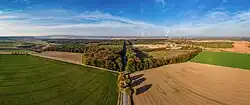 Hambach surface mine (gray); remaining Hambach Forest in the south (NE of Morschenich (de)); recultivated Sophienhöhe in NW, 2017[1]