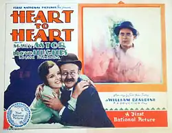 Heart to Heart is a 1928 American silent comedy film directed by William Beaudine and produced and distributed by the First National company.[1] The film is preserved in the Library of Congress collection, Packard Campus.[2][3]