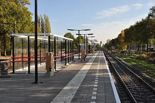 The station is located on the Staatslijn D (Zutphen - Glanerbeek) and is located near the Streekziekenhuis Midden-Twente (Hospital) in the west of Hengelo. A station called Tuindorp-Nijverheid, which opened on 1 November 1865 as part of the Staatslijn D and closed in 1936, used to exist in the general area of the new station. The construction of the new station was planned to begin by April 2009, and to be completed by December 2009. The station finally opened on 9 December 2012. The new station has a 130-metre (427 ft) long platform, and a 42-metre (138 ft) long covered area with 20 seats and a ticket machine. The train services are operated by Arriva.