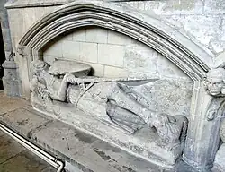 Effigy commonly supposed to represent Henry de Raleigh (d.1301), the westernmost of an adjacent pair of so-called "crusader" effigies, north wall of south choir aisle/ambulatory, Exeter Cathedral[1]