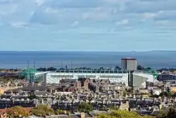 Scotland have played seven of their home matches at Easter Road, between 1998 and 2017.[119] Scotland women played their first match at Easter Road in August 2019, a Euro 2022 qualifying match against Cyprus.[120] The ground has hosted one international not involving the Scotland teams, a friendly played between Ghana and South Korea preceding the 2006 FIFA World Cup.[121] Easter Road has also sometimes been used as a neutral venue for Scottish League Cup semi-final matches[122][123][124][125] and once hosted a Scottish Challenge Cup final.[126]