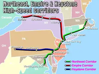 - ^ "High Speed Rail Empire Corridor Program" (PDF). High Speed Rail Empire Corridor Project. New York Department of Transportation. Archived from the original (PDF) on April 24, 2014. Retrieved April 24, 2014.