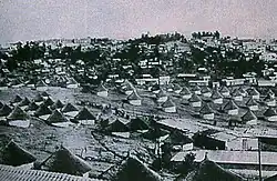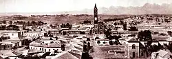 Italian troops took advantage of Alula's absence, the power vacuum left as a result of Emperor Yohannes’ death, and the havoc wreaked by three years of famine to take control of the city on August 3, 1889.[8] They built their fort on a hill in the village of Beit Mekae, forcing the inhabitants of this village to resettle nearby. At the time of General Baldisera’s arrival, the small town had 3000 inhabitants[8] and consisted of traditional mud huts, Agdos and Hidmos. Above all, the military fort at Beit Mekae was a strategic point when it came to controlling the local population; it also served as a military strongpoint from which local uprisings, which were largely directed against the government’s power of eminent domain, could be suppressed.[9] Eritrea officially became an Italian colony in 1890 and Massawa – already the seat of the colonial administration since 1885 – was declared the capital. At this time, because of the danger of insurrection in the highlands, Asmara was not considered to become the capital of the new colony. Furthermore, Bizzon explains, Asmara was not developed enough to serve as the capital: "Politically, militarily, and even logistically, the distance between Massawa and Asmara is greater than the distance between Italy and Massawa."[10] The lack of an infrastructural link to Massawa prevented Asmara from developing quickly.