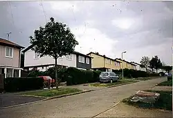 The town saw rapid expansion during the 1930s and 1940s as housing was built for newcomers from nearby towns and the emerging London overspill, and another 2,545 (including Withycombe Drive in 1947) during the period from 1945 to 1967 as the population began to grow significantly. The housing developments were mainly in the western parts of the town between the Warwick and Broughton roads, with others being built on the site of the former brickworks in Grimbury.[25] A later expansion between the 1950s and 1970s would reach Hardwick, Ruscote, Easington, Bretch Hill and Poets' Corner, due to influxes from the London overspill and from the West Midlands.[13]