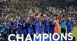 Under Tuchel Chelsea went on a good run of form and were unbeaten in Tuchel's first 13 games at the club.[168] Chelsea finished the season in the top four after being 9th in the table when Tuchel arrived.[169] Chelsea also progressed to the FA Cup Final after knocking out Premier League leaders Manchester City, only to lose 1–0 to Leicester City in the Final.[170] Chelsea progressed to the 2021 UEFA Champions League Final after beating Atletico Madrid, Porto, and Real Madrid in the round of 16, quarter-finals and semi-finals respectively.[171] Chelsea won the Champions League for the second time after beating Manchester City 1–0 on May 29, 2021, at Estádio do Dragão in Porto, Portugal with Kai Havertz scoring the winner.[172]