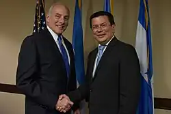 Hugo Roger Martínez Bonilla (born 2 January 1968) is a Salvadoran industrial engineer, politician, diplomat and writer. He is a member of the Farabundo Martí National Liberation Front (FMLN), one of the two major political parties in El Salvador. Martínez served as Foreign Minister of El Salvador from 2009 until 2013 under former President Mauricio Funes and again from 2014 to 2018 within the government of President Salvador Sánchez Cerén.[1] In 2019, being the ruling party presidential candidate, he came 3rd with 14%.