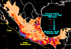 12. ^ a b "Mexicans flee tropical storm: More than 1,000 people were rescued from three coastal states after a tropical storm hit the Pacific Coast". The Associated Press. September 7, 1999. – via Lexis Nexis (subscription required)
