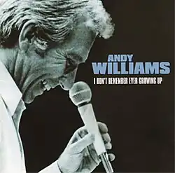 I Don't Remember Ever Growing Up is the forty-third and final studio album by American pop singer Andy Williams, released in the UK by the Demon Music Group in 2007.[1] In the liner notes of the album Williams writes, "Over the past few years I have come across songs that I really wanted to record. I picked 13 of my favorites and set out to make a new record."[2] While the title track is the only new song, the other 12 selections were chart hits for other artists or, as is the case with "Desperado" by the Eagles, received critical acclaim without having been released as a single.[3]