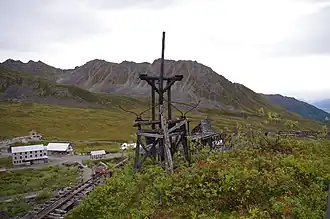 The Independence Mines, now Independence Mine State Historical Park, is the site of a former gold mining operation in the Talkeetna Mountains, across Hatcher Pass from Palmer, Alaska. The area's mining history dates to at least 1897, when active claims were reported in the vicinity of Fishook Creek. These early mining efforts were eventually joined to form the Wasilla Mining Company, which worked the mines from 1934 to 1943, and again from 1948 to 1950. The mining operation at Independence was the second-largest hard-rock gold mining operation in the state, after a larger site near Juneau. The company and the miners that preceded it built a substantial mining camp, with as many as sixteen wood-frame buildings, which were originally connected to each other by sheltered wooden "tunnels". When the company ended operations in 1950, it had expected to eventually resume operations, but never did; this resulted in a particularly well-preserved collection of mining equipment and buildings, although the weather has since taken a significant toll on the latter.[2]