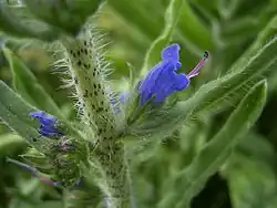 In biology, an indumentum (Latin, literally: "garment") is a covering of trichomes (fine "hairs") on a plant[1] or of bristles (rarely scales) of an insect.