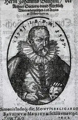 - ^ One or more of the preceding sentences incorporates text from a publication now in the public domain: Chisholm, Hugh, ed. (1911). "Bauhin, Gaspard s.v. Jean Bauhin". Encyclopædia Britannica. Vol. 3 (11th ed.). Cambridge University Press. p. 539.