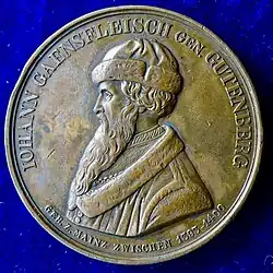 2. ^ German pronunciation: [joˈhanəs ˈɡɛnsflaɪ̯ʃ tsuːɐ̯ ˈlaːdn̩ tsʊm ˈɡuːtn̩bɛʁk]; English: /ˈɡtənbɜːrɡ/