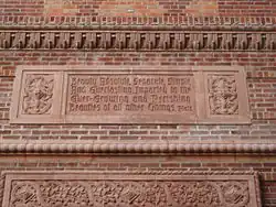 The buildings contains three prominent quotations on its main, west-facing facade. Above the door, there is a quotation from Proverbs, near the south end of the facade there is a passage from Plato, and on the north part a quotation from Lao Tzu.[14]