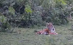 Kaziranga is one of the few wild breeding areas outside Africa for multiple species of large cats, such as Bengal tigers and Indian leopard.[32] Kaziranga was declared a Tiger Reserve in 2007 .[33] Other felids include the jungle cat, fishing cat and leopard cat.[32] It is also the only place in India and the world, where a Golden tiger was spotted in the wild.[40]