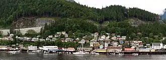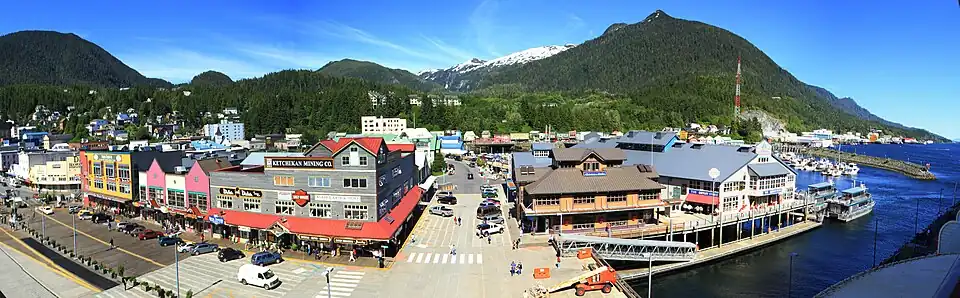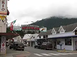 Ketchikan (/ˈkɛɪkæn/ KETCH-ih-kan;[4] Tlingit: Kichx̱áan) is a city in and the borough seat of the Ketchikan Gateway Borough on Revillagigedo Island of Alaska.[5][6] It is the state's southeasternmost major settlement. Downtown Ketchikan is a National Historic Landmark District.