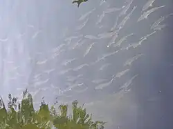 Ketchikan is named after Ketchikan Creek, which flows through the town, emptying into the Tongass Narrows a short distance southeast of its downtown. "Ketchikan" comes from the Tlingit name for the creek, Kitschk-hin, the meaning of which is unclear. It may mean "the river belonging to Kitschk"; other accounts claim it means "Thundering Wings of an Eagle".[8] In modern Tlingit, this name is Kichx̱áan.[9]
