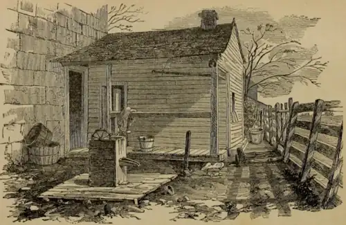 There are varying accounts of what happened next. Taylor and Richards’ accounts state that Smith was dead when he hit the ground. Eyewitness William Daniels wrote in his 1845 account that Smith was still alive when members of the mob propped his body against a nearby well, assembled a makeshift firing squad, and shot him before fleeing. Daniels’ account also states that one man tried to decapitate Smith for a bounty but was prevented by divine intervention, an affirmation later denied.[47] Additional reports said that thunder and lightning frightened off the mob.[48] Mob members fled, shouting, “The Mormons are coming,” although there was no such force nearby.[49]