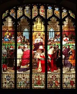 The establishment of Christianity brought Latin to Scotland as a scholarly and written language. Monasteries served as repositories of knowledge and education, often running schools and providing a small educated elite, who were essential to create and read documents in a largely illiterate society.[121] In the High Middle Ages, new sources of education arose, with song and grammar schools. These were usually attached to cathedrals or a collegiate church and were most common in the developing burghs. By the end of the Middle Ages grammar schools could be found in all the main burghs and some small towns.[122] There were also petty schools, more common in rural areas and providing an elementary education.[123] Some monasteries, like the Cistercian abbey at Kinloss, opened their doors to a wider range of students.[123] The number and size of these schools seems to have expanded rapidly from the 1380s. They were almost exclusively aimed at boys, but by the end of the 15th century, Edinburgh also had schools for girls, sometimes described as "sewing schools", and probably taught by lay women or nuns.[122][123] There was also the development of private tuition in the families of lords and wealthy burghers.[122] The growing emphasis on education cumulated with the passing of the Education Act 1496, which decreed that all sons of barons and freeholders of substance should attend grammar schools to learn "perfyct Latyne". All this resulted in an increase in literacy, but which was largely concentrated among a male and wealthy elite,[122] with perhaps 60 per cent of the nobility being literate by the end of the period.[124]