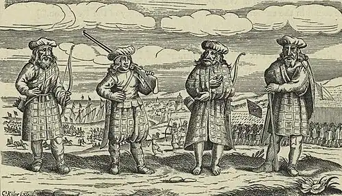 From the mid-16th century, written Scots was increasingly influenced by the developing Standard English of Southern England due to developments in royal and political interactions with England.[99] With the increasing influence and availability of books printed in England, most writing in Scotland came to be done in the English fashion.[100] Unlike many of his predecessors, James VI generally despised Gaelic culture.[101] Having extolled the virtues of Scots "poesie", after his accession to the English throne, he increasingly favoured the language of southern England. In 1611, the Kirk adopted the 1611 Authorized King James Version of the Bible. In 1617, interpreters were declared no longer necessary in the port of London because as Scots and Englishmen were now "not so far different bot ane understandeth ane uther". Jenny Wormald describes James as creating a "three-tier system, with Gaelic at the bottom and English at the top".[102]