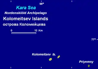 The Kolomeytsev Islands (Russian: острова́ Коломе́йцева, ostrova Kolomeytseva) are two small Russian islands, at the northwestern end of the Nordenskjold Archipelago in the Kara Sea coastal region, off the coast of Siberia.