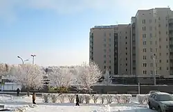 Since 2006 in Koltsovo 4 new neighborhoods have been constructed and the 5th is planned to be built in the next 5 years.[30] It provides population growth as well as high birth rate in Koltsovo. Koltsovo has a high-level medical complex, including a refurbished policlinic with new center for rehabilitation for children with cerebral palsy,[31] schools, including a boarding school with specialisation in biotechnology,[32] kindergartens, recreation centers, a recently refurbished art school,[33] trading centers, drug stores, market, cafés, and a hotel. Koltsovo Park offers downhill skiing in winter and fishing and horse riding in summer.[34] Koltsovo has a stadium, refurbished in 2008, with running tracks, tennis court, football and volleyball fields.[35] The social life thrives with guest performances of Novosibirsk theaters and concerts. The Youth Parliament,[36] which implements social projects, was organized by students living in Koltsovo.