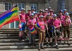In 2004 the San Diego chapter of Gay, Lesbian and Straight Education Network (GLSEN) worked with San Diego Youth Pride coordinators to organize a Day of Silence throughout the county.[52] In 2005, Decatur (Georgia) Youth Pride participated in a counter-demonstration against Westboro Baptist Church (led by church head Fred Phelps' daughter Shirley Phelps-Roper), who were "greeting students and faculty as they arrived with words such as 'God hates fag enablers' and 'Thank God for 9/11'" at ten locations.[53] In 2008 Chicago's Youth Pride Center, primarily serving "LGBT youth of color", opened a temporary location and planned to move into their new building on Chicago's South Side in 2010.[54] In 2009, the Utah Pride Center held an event to coincide with Youth Pride Walk 2009, a "cross-country walk by two Utah women trying to draw attention to the problems faced by homeless LGBT youth".[55] In August 2010 the first Hollywood Youth Pride was held, focusing on the "large number of homeless LGBT youth living on Los Angeles streets."[56] According to a 2007 report, "Of the estimated 1.6 million homeless American youth, between 20 and 40 percent identify as lesbian, gay, bisexual or transgender".[57] At larger pride parades and festivals there are often LGBTQ+ or queer youth contingents, and some festivals designate safe spaces for young people.[58][59]