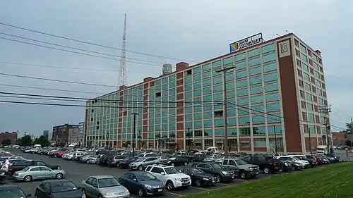 The Larkin Terminal Warehouse, also known as Larkin at Exchange or the Larkin R/S/T Building,[1] : p.88 is located at 726 Exchange Street, Buffalo, New York in a neighborhood known as the "Hydraulics." The neighborhood was one of Buffalo's earliest industrial districts and its name is derived from the construction of a small hydraulic canal. The building, clearly visible from the I-190 interstate, was originally part of the Larkin Company and was one of the last constructed buildings in the complex.[2] The building has a radio tower on the roof erected by WEBR-AM in 1936.[3]