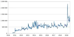 LibreOffice was announced on 28 September 2010, with its first stable release in January 2011. It recorded about 7.5 million downloads in its first year,[15] and more than 120 million by 2015, excluding those bundled with Linux distributions.[16] As of 2018, TDF estimated around 200 million active users.[17] The suite is available in 120 languages.[18]