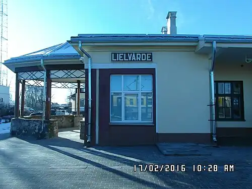 Lielvārde Station (until 1926, Rembate) is a railway station on the Riga–Daugavpils Railway in Latvia.[1] It is located in Vidzeme in Lielvarde, the Lielvārde Municipality center.
