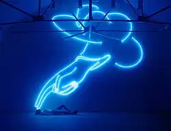 Light art or the art of light is generally referring to a visual art form in which (physical) light is the main, if not sole medium of creation. Uses of the term differ drastically in incongruence; definitions, if existing, vary in several aspects. Since light is the medium for visual perception, this way all visual art could be considered light art absurdly enough; but most pieces of art are valid and coherent without reflecting on this basic perceptual fact. Some approaches on these grounds also include into light art those forms of art where light is not any medium contributing to the artwork, but is depicted. Thus, luminism[1] may also refer to light art in the above sense, its previous usage point to painterly styles: either as an other label for the Caravaggisti in the baroque, or 19th and 20th centuries, fundamentally impressionist schools.