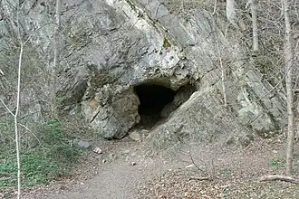 • Monocacy River - Located 20 feet (6.1 m) above the east bank of the Monocacy river east of Hansonville. The entrance is 4 feet wide and 2 feet high at the base of a small cliff just above the power line. The cave is developed in thinly-bedded Frederick limestone and extends for over 25 feet (7.6 m) towards the southeast.[8]