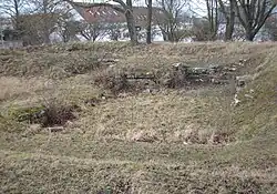 Ellinghem Church Ruin consists of the remains of a 13th-century church. The medieval altar has been preserved in place, and in 1923–24 the remains of the baptismal font were found during an archaeological excavation of the church. It is not known when the church was abandoned, but this probably happened at the beginning of the 17th century.[2][6] |