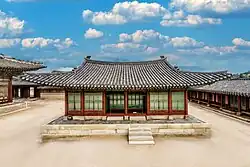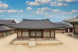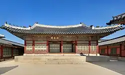 The king's quarters.[98] It was named by Chŏng Tojŏn after the third of the Five Blessings.[99] It was completed in 1395.[21][100] It was renovated in 1433.[100][40][52] It was destroyed in the 1553 fire and rebuilt.[3][29][30] It was again destroyed in 1592.[100] It was destroyed in the 1876 fire[101][8][102] and was rebuilt in 1888.[102] It was used as an art gallery during the 1915 Chōsen Industrial Exhibition.[103] After the 1917 Changdeokgung fire, it was disassembled and moved to Changdeokgung.[82][35][65]