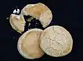 India A dessert made with flour, soaked rice, and molten jaggery, fried with oil, and topped with sesame or poppy seeds.