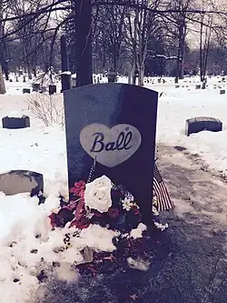 Three memorial services were held for Ball.[106] She was cremated, and the ashes were originally interred at Forest Lawn – Hollywood Hills Cemetery in Los Angeles, where her mother was also buried. In 2002, Ball's and her mother's remains were re-interred at the Hunt family plot at Lake View Cemetery in Jamestown, New York, in accordance with Ball's wishes to be buried near her mother.[107] The remains of her brother, Fred Henry Ball, were also interred there in 2007.