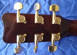 - on classical guitars (with nylon strings), the worm gears are generally exposed; the strings are wound on the pins inside grooves in the head;