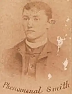 (1888) Phenomenal Smith, Old Judge baseball card. Smith managed the Manchester teams for five seasons and won two New England League batting championships.