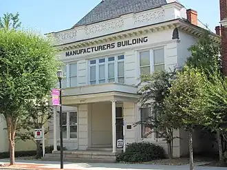 Manufacturers Building is a historic commercial building located at Rockingham, Richmond County, North Carolina. It was built about 1904, and is a two-story, cream-colored brick commercial building. Its brickwork is in common bond. It has a high hipped and slate covered roof. The building served as the administrative offices for five of the most important textile mills in Richmond County—Pee Dee Manufacturing Company, Steele's Mills, Roberdel Mills, Midway Mills, and Hannah Pickett Mills.[2]