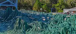 The Challenger Relief Map of British Columbia is a hand-built topographic map of the province, 80 feet by 76 feet. Built by George Challenger and his family from 1947 to 1954, it features all of B.C.'s mountains, lakes, rivers and valleys in exact-scaled topographical detail. Residing in the British Columbia Pavilion at the Pacific National Exhibition (PNE) in Vancouver from 1954 to 1997 it was viewed by millions of visitors. The Guinness Book of Records cites the Challenger Map as the largest of its kind in the world. The map in its entirety occupies 6,080 square feet (1,850 square metres) of space. It was disassembled in 1997; there is a project to restore it in a new location.[11]