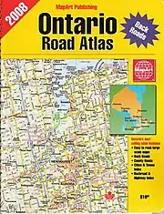 The MapArt Publishing Corporation is a Canadian cartography publisher founded in 1981 by Peter Heiler Ltd.[1] that produces and prints yearly editions of maps for Canada and the United States. Headquartered in Oshawa, Ontario, MapArt is Canada's leading map publisher, producing more Canadian titles than any of its competitors and all settlements with a population over 5000 in Canada are covered in various editions.[2][3][4] Its signature yellow cover is seen throughout the country at filling stations, convenience stores, and general merchandising stores. MapArt Publishing grouped up with Rand McNally Maps and JDMGEO Maps, to create CCC Maps in 2013 but returned to publish under the MapArt banner in 2014.[5]