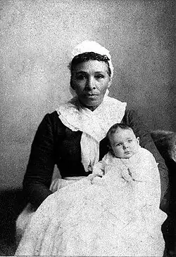 ![]() Reddick holding Carrie Winder Cowan in 1885. | |