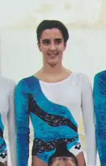 At the beginning of 1989, she won three silver medals in the DTB-Pokal Karlsruhe tournament. Shortly thereafter, as a substitute gymnast, she won three bronze medals at the Sarajevo World Championships. The group reached the podium both in the all-around and in the two finals, 12 clubs and 3 ropes and 3 ribbons.[5] These medals were won together with other group members Beatriz Barral, Lorea Elso, Bito Fuster, Arancha Marty, Mari Carmen Moreno and Vanesa Muñiz, with Nuria Arias being the other substitute. In December 1989, again as a substitute, she won all-around bronze in the Wacoal Cup in Japan.