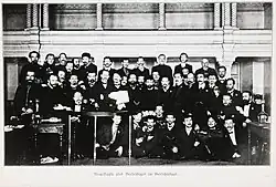 The Soviet of Workers' Deputies of St. Petersburg in 1905: Leon Trotsky in the centre. The Soviets were an early example of a workers council.